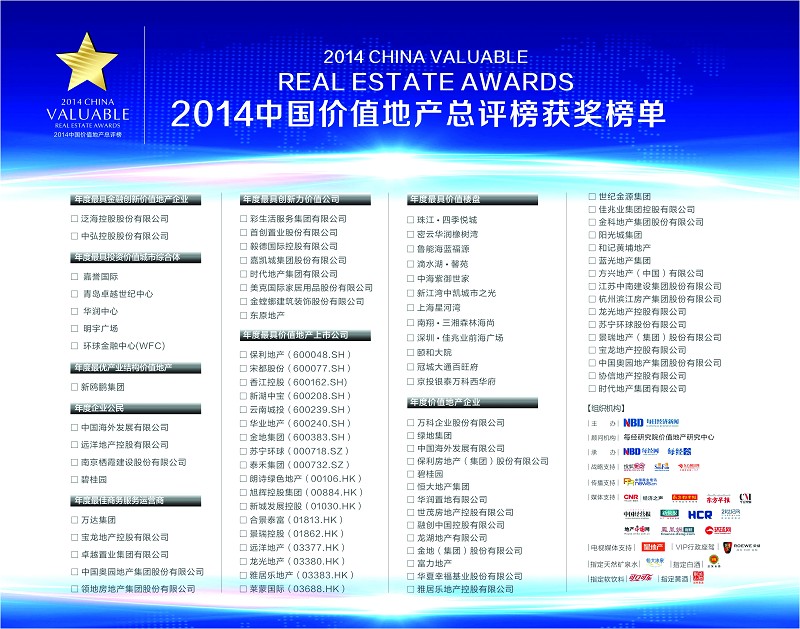 | 16:25-17:25 | 60′ | 2014中國價(jià)值地產(chǎn)總評(píng)榜榮譽(yù)盛典 | |
